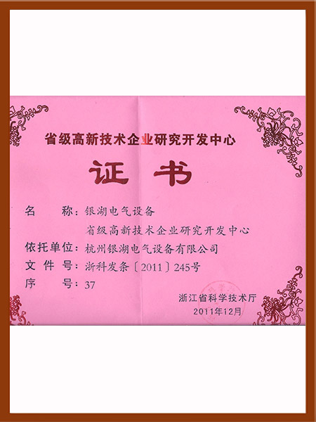 省级高新技术企业研究中心证书