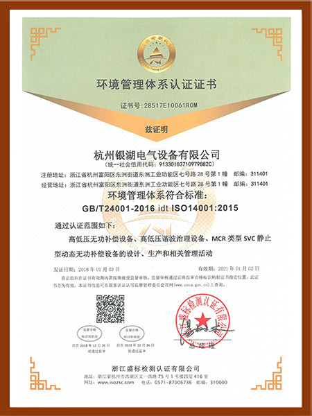 环境管理体系认证证书